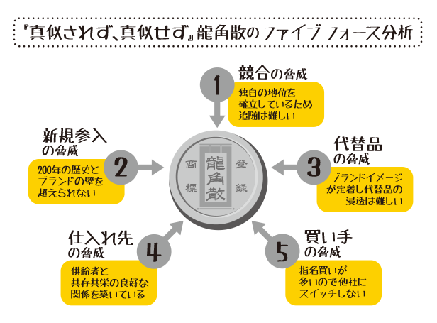 龍角散は、5つの脅威を正面から受けずに済む独自のポジションを構築することで、高収益を実現しています。