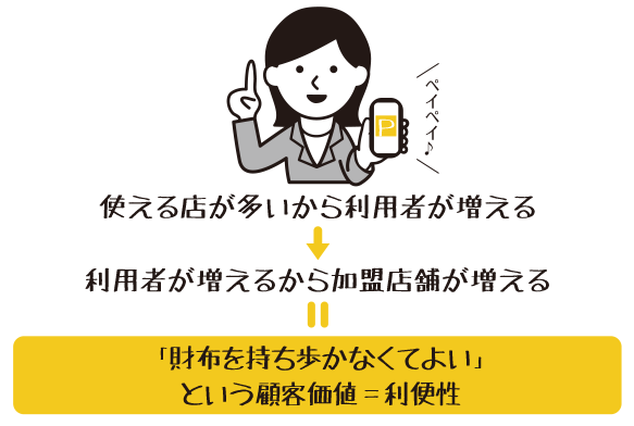 補完味方店と使う人が増えるほど、お互いの便利さが勝手に高まっていく
